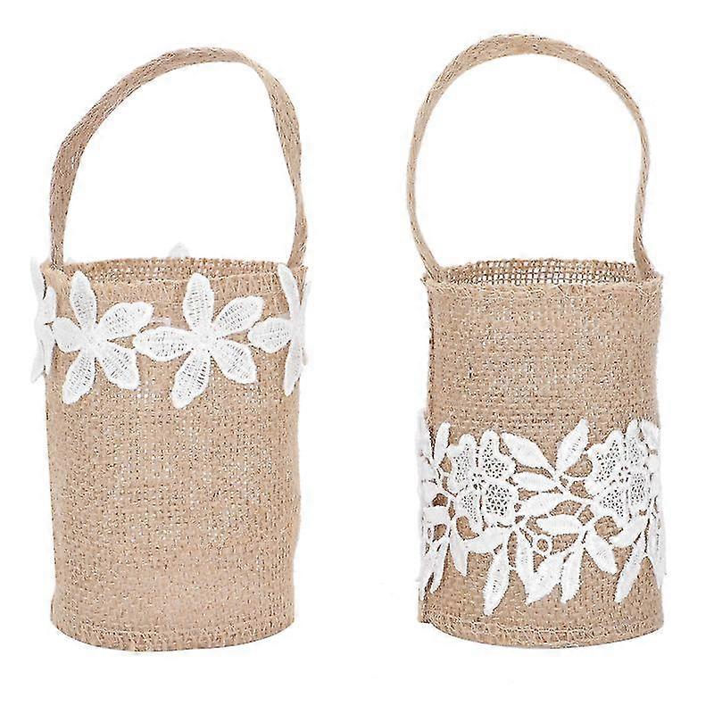 2pcs Pretty Storage Holders Linen Flower Baskets Wedding Supplies (white, Beige)