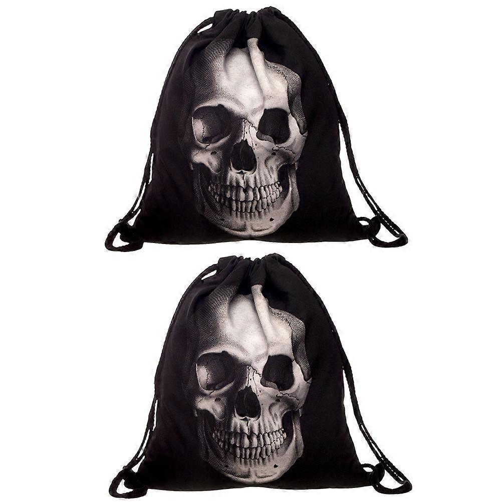 2pcs Drawstring Bag Stylish Unisex 3D Skull Printing Drawstring Backpack Satchel Sack Bag Bag Black