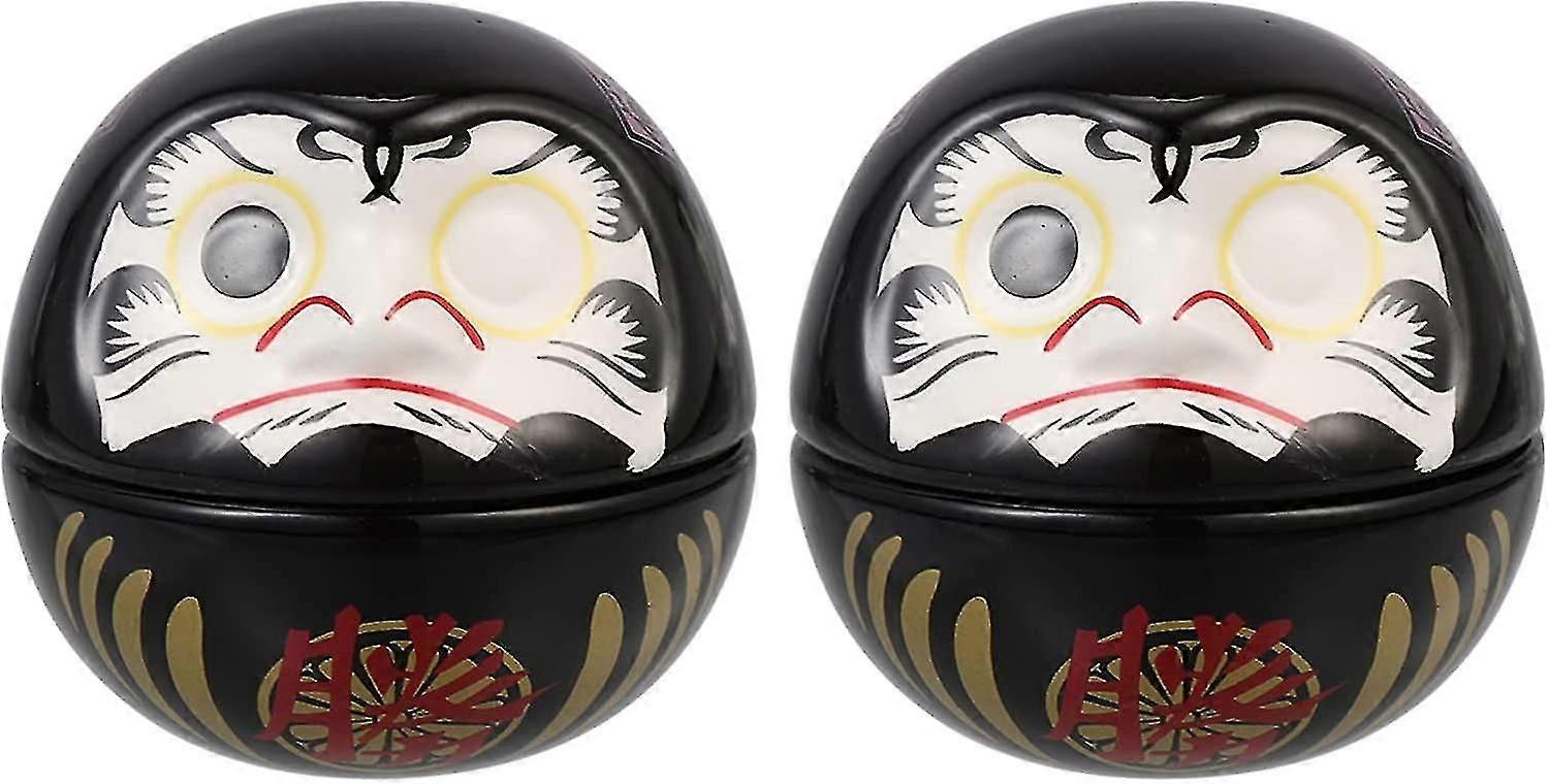 2pcs Daruma Dolls Ceramic Tumbler Daruma Collectible Figurines Handmade Daruma Doll And Good Wishes Desk Topper