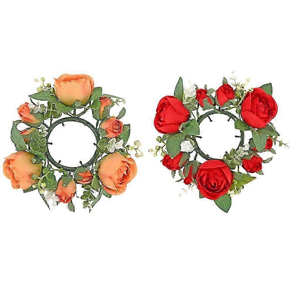 2pcs Candle Ring Pillar Candle Wreaths Rings Flower Candle Wreaths Decorations Centerpieces