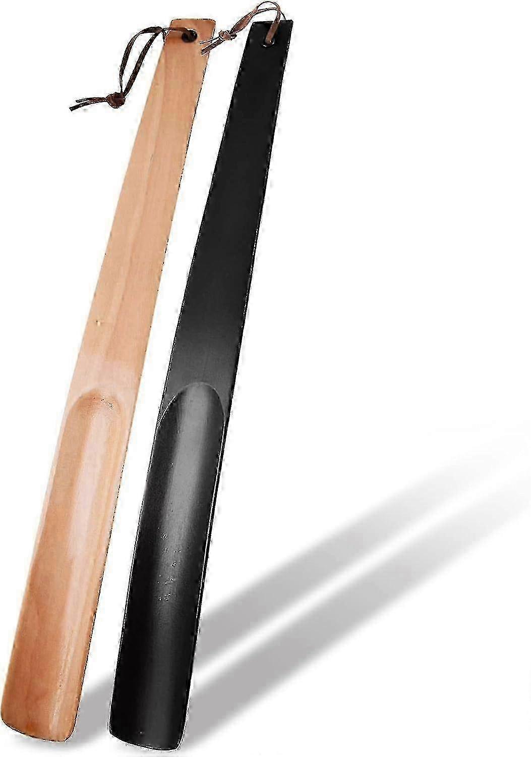 2pcs Long Shoehorn, Premium Extra Long Handled Wooden Shoehorn for Men, Women, Kids, Boots and Shoes