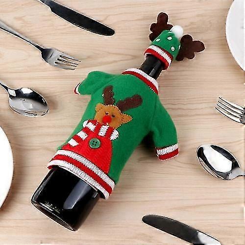 2 Pcs Christmas Home Party Champagne Red Wine Bottle Cap Sweater Decoration