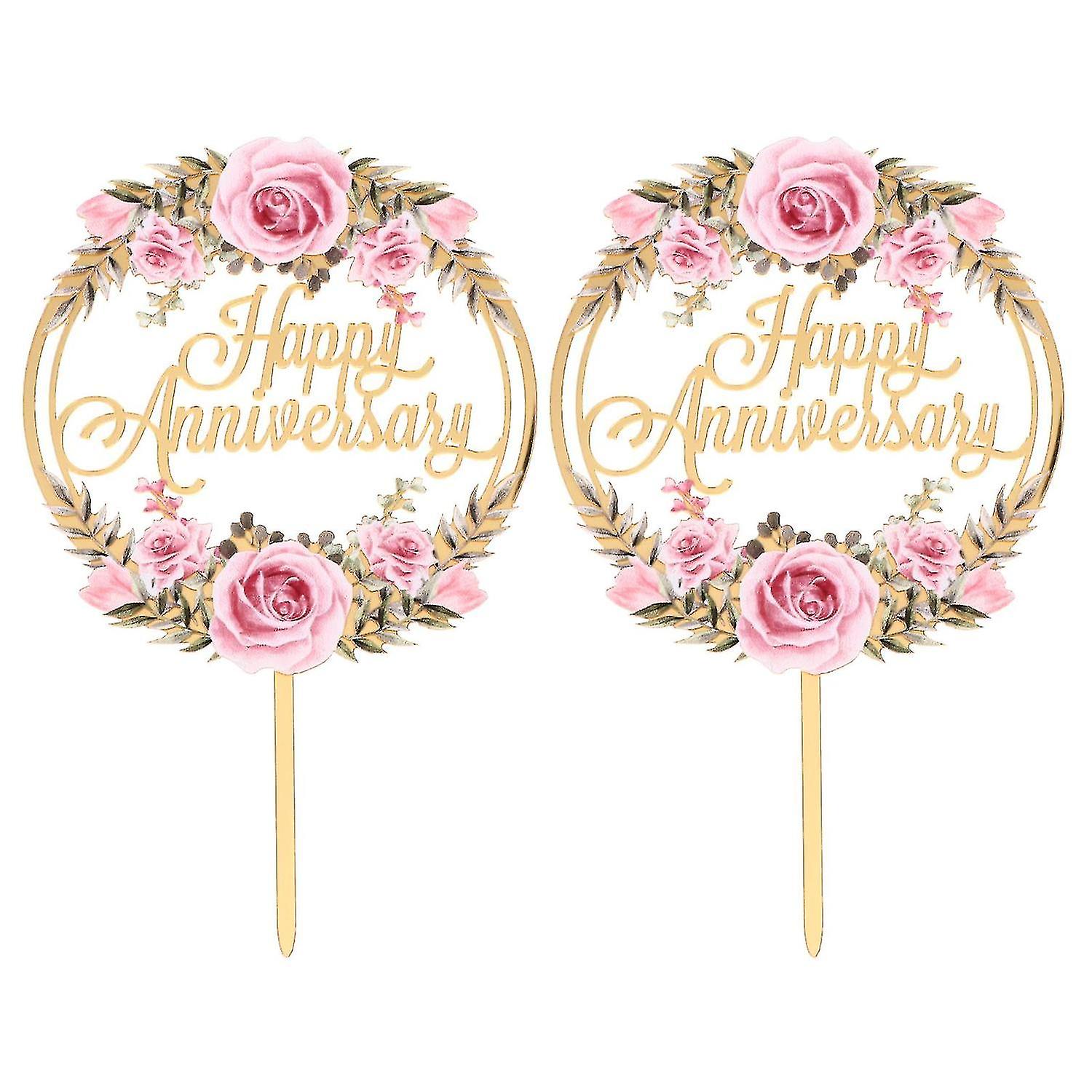 2pcs Acrylic Cake Insert Toppers Wedding Anniversary Dessert Toppers Cake Decors