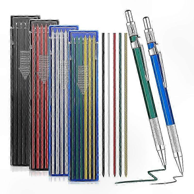 2 Pcs Welders Pencil with 48 PCS Round Refills Mechanical Pencils Metal Welding Marker for Tube Pipe Welder