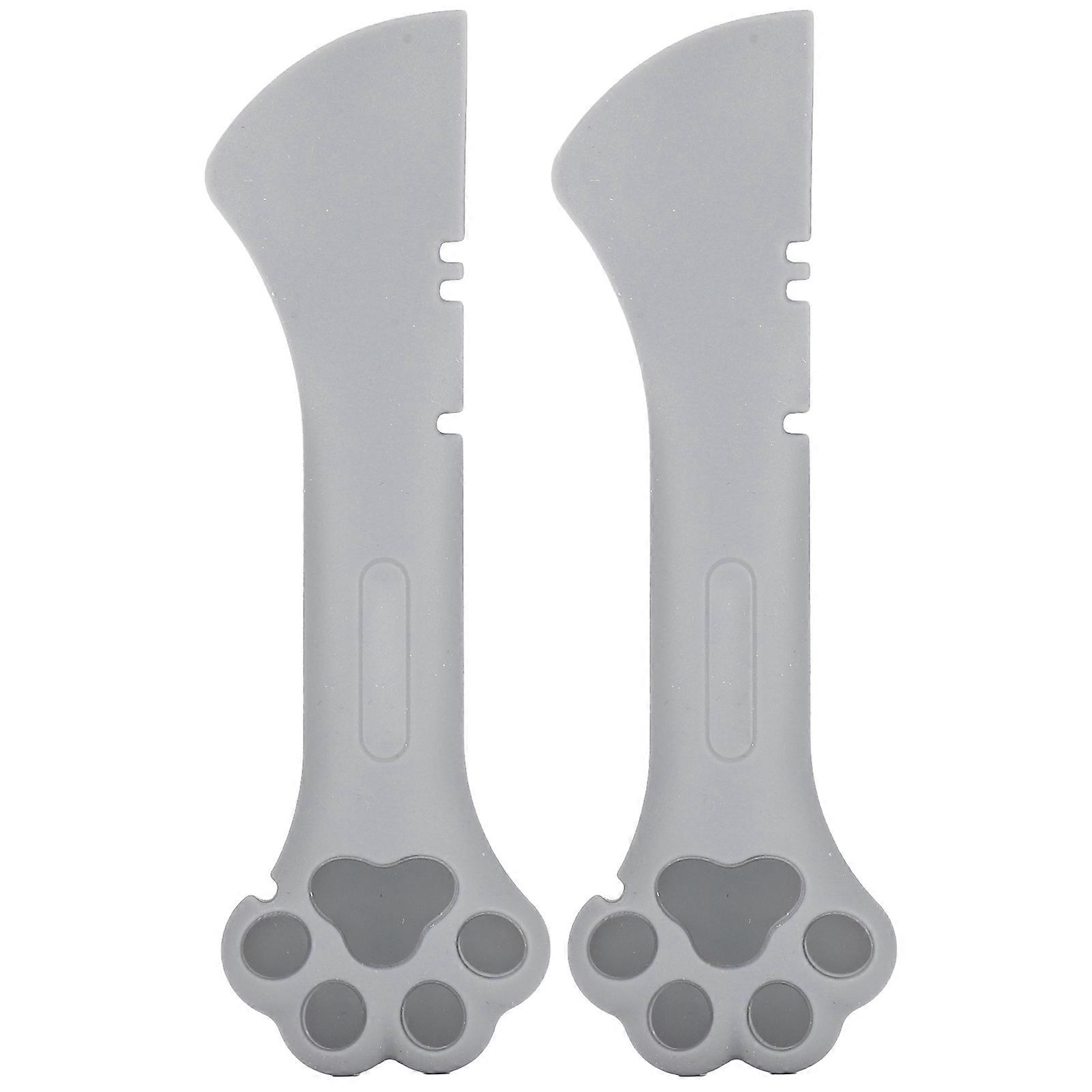 2pcs Multifunction Pet Cat Paw Can Opener Food Spoon Silicone Lightweight Washable For Catgray