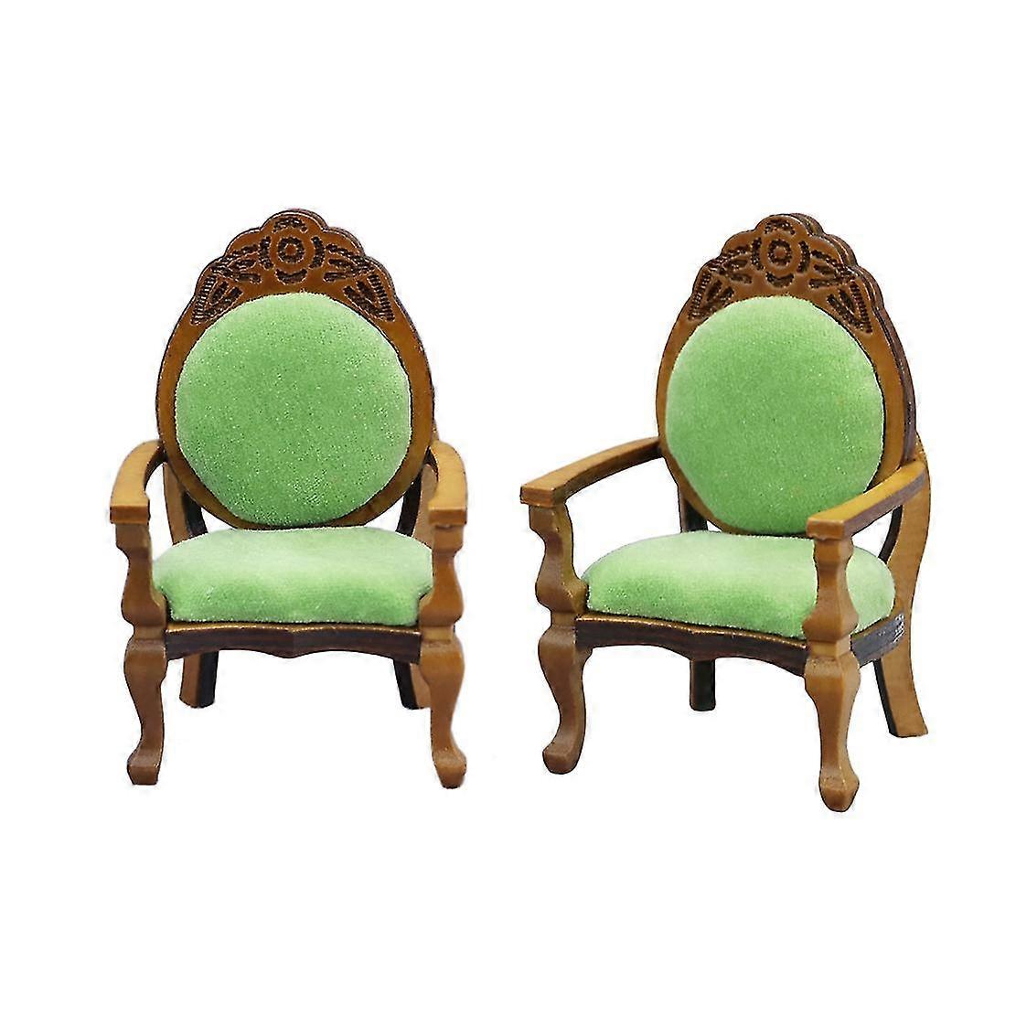 2pcs Miniature Dollhouse Chair 1:12 Furniture Dollhouse Chair Wooden Carved Single Sofa Chair Vinta