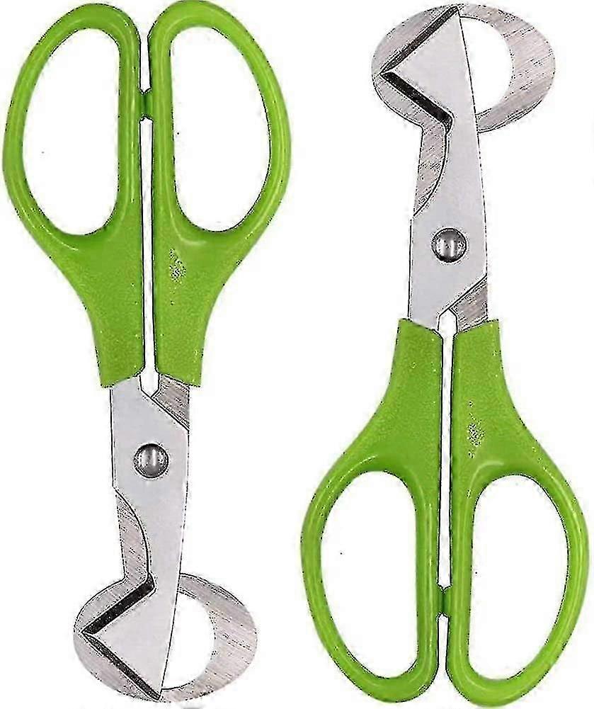 Dimensions: 14 * 6.5 Cm. Material: Stainless Steel + Abs Handle. Color: Green Package Includes: 2 X Scissors; Small And Practical Eggs. Can Help You Quickly Open The Eggs. Good Helper For Family Life.