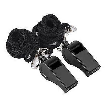 2pcs Plastic Sports Training Whistles with Lanyard (Black)