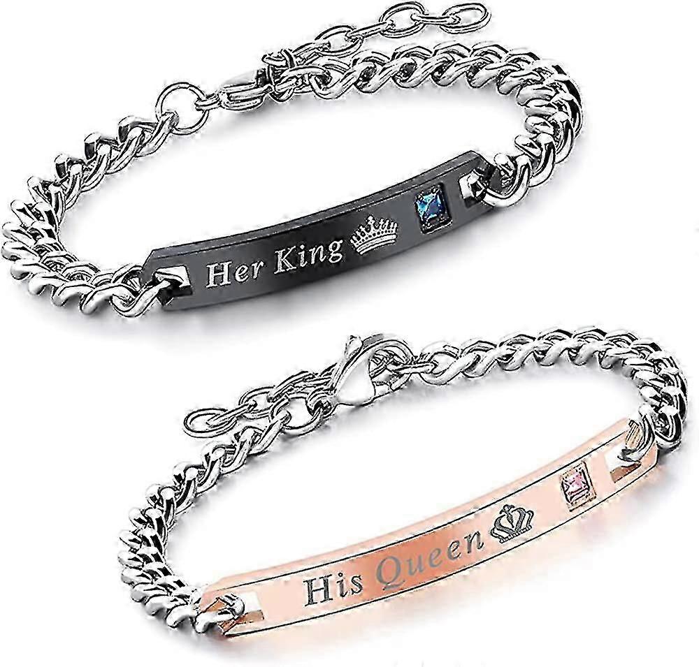 2pcs Heilwiy King And Queen Matching Set His Hers Couples Bracelets Cubic Zirconia