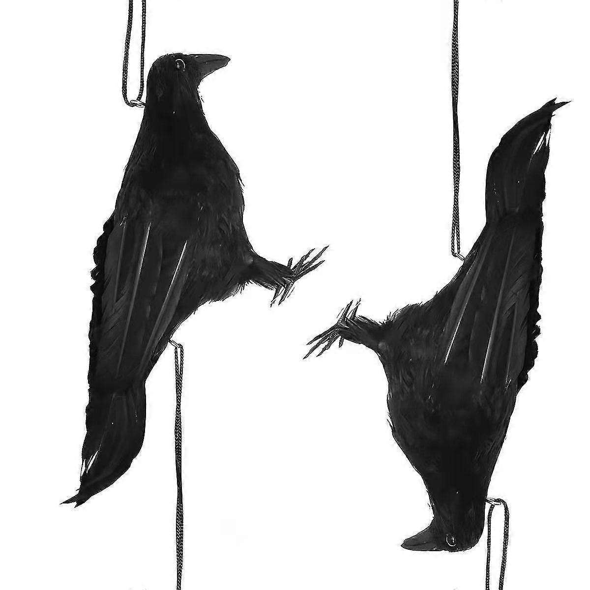2Pcs 33 cm Realistic Hanging Dead Crows Decoy Real Touch Halloween Black Feathered Crow Artificial Crow Bird Raven Prop for Halloween Party Decoration