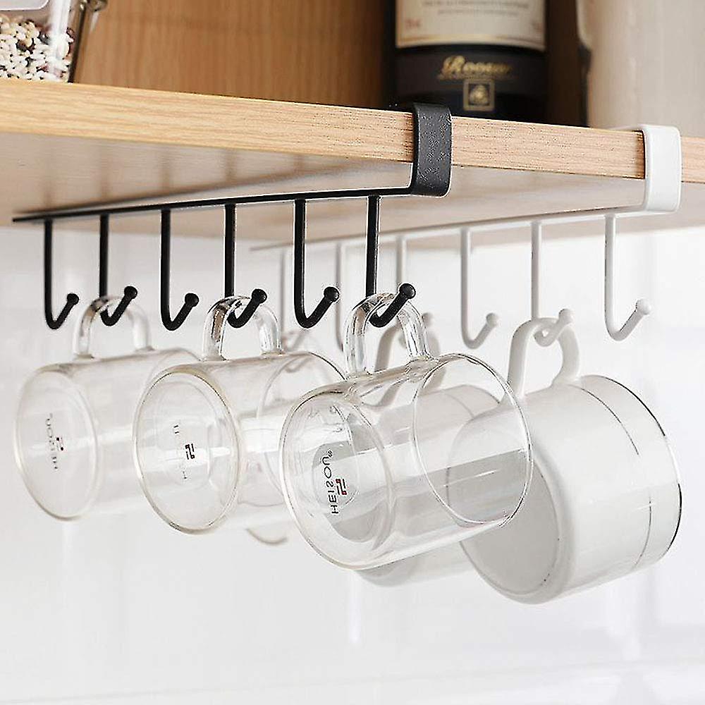 2pcs 6 Hooks Tea Cup Mug Holder Under Shelf Cup Hanger Drying Racktowel Holder Cabinet Kitchen Hanging Organizer (white)