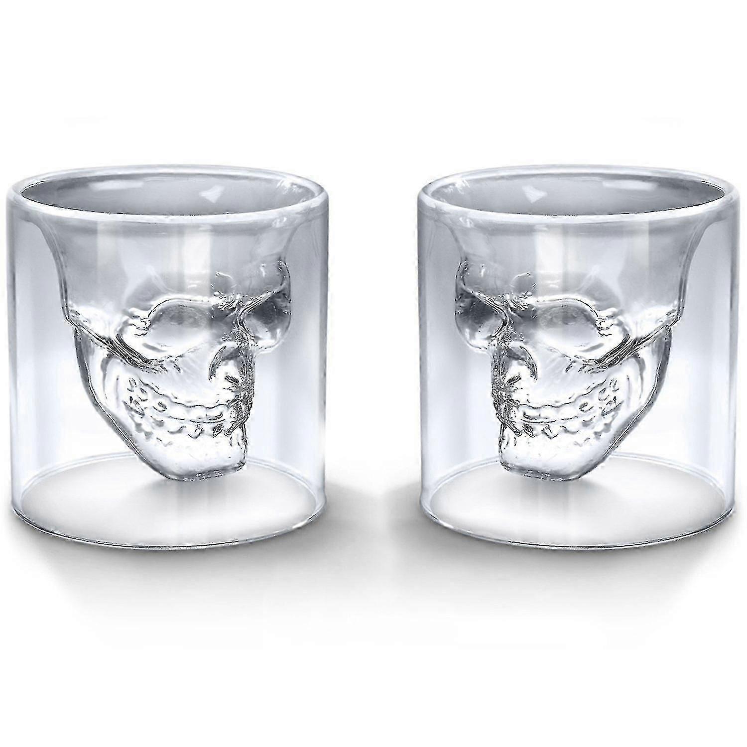2pcs 75ml Crystal Skull Shotglass Skull Glass Cup,double Layer Transparent Skull Pirate Shot Glasses Drink Cocktail