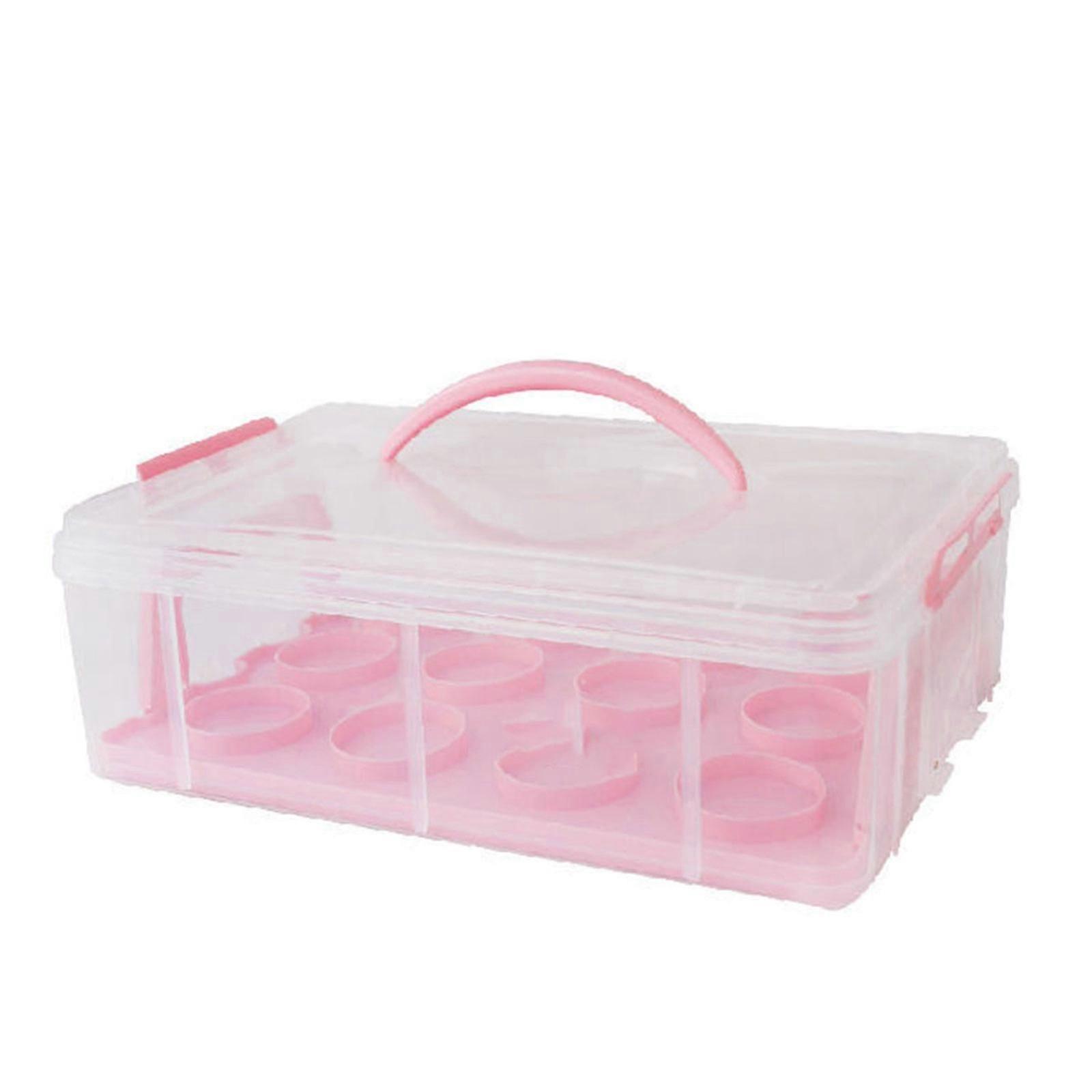 2 Tier Cupcake for Carrier with Lid Holds 24 Cupcakes Organizer with Handle Kitchen Countertops Storage Box L White