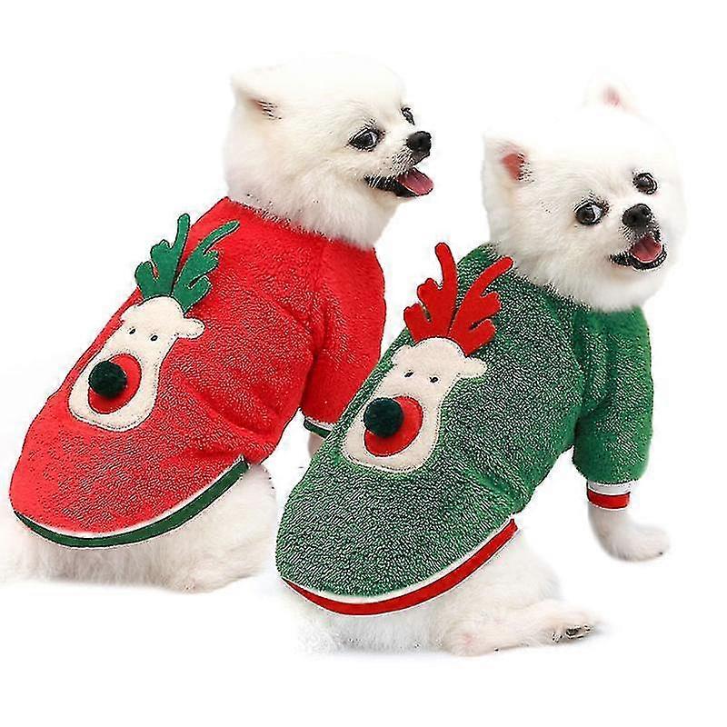 2 Cute French Bulldog Pet Christmas Dresses For Christmas, Xmas Teddy Bear Autumn And Winter Clothes
