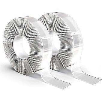 2 Rolls Double Sided Non-marking Transparent Tape, No Trace Nano Tape, Washable Gift