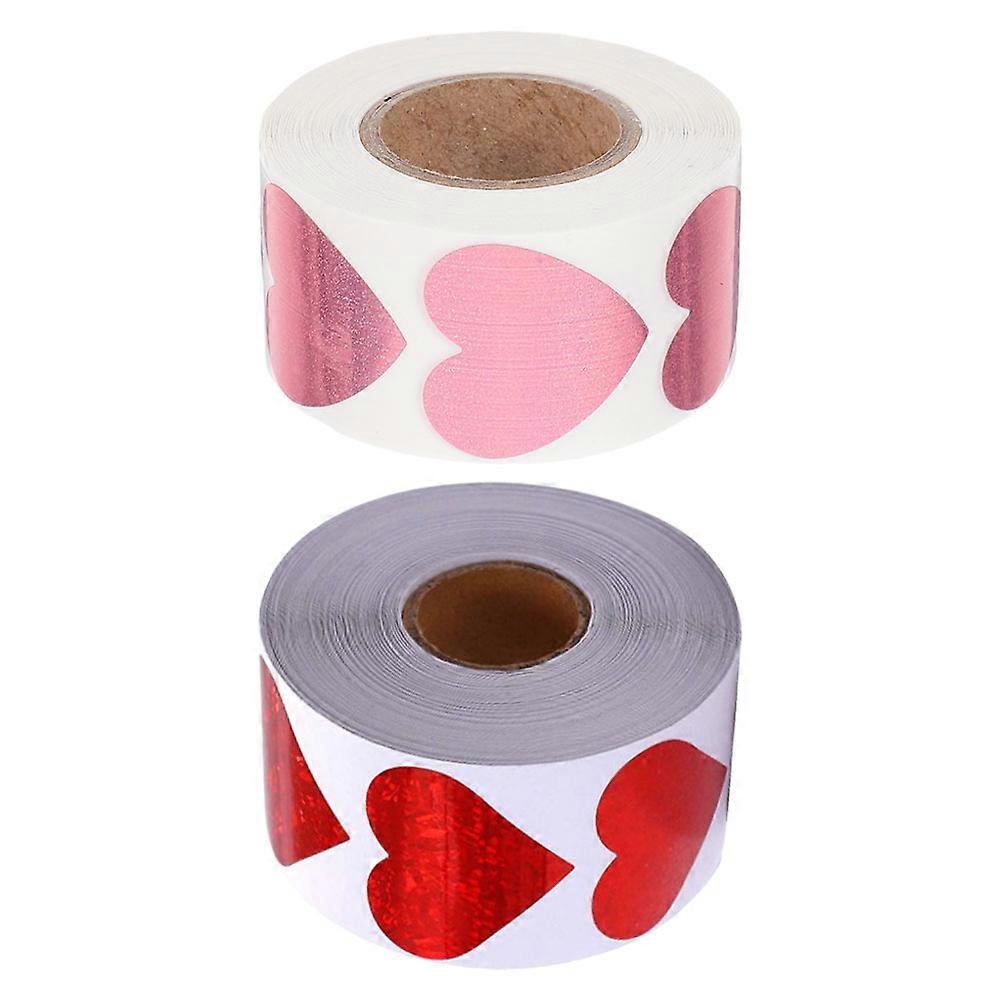 2 Rolls Removable Heart Stickers, Glitter Foil Self Adhesive Labels for Scrapbooking, Wrapping, Party Decor, DIY Crafts & Body Decals