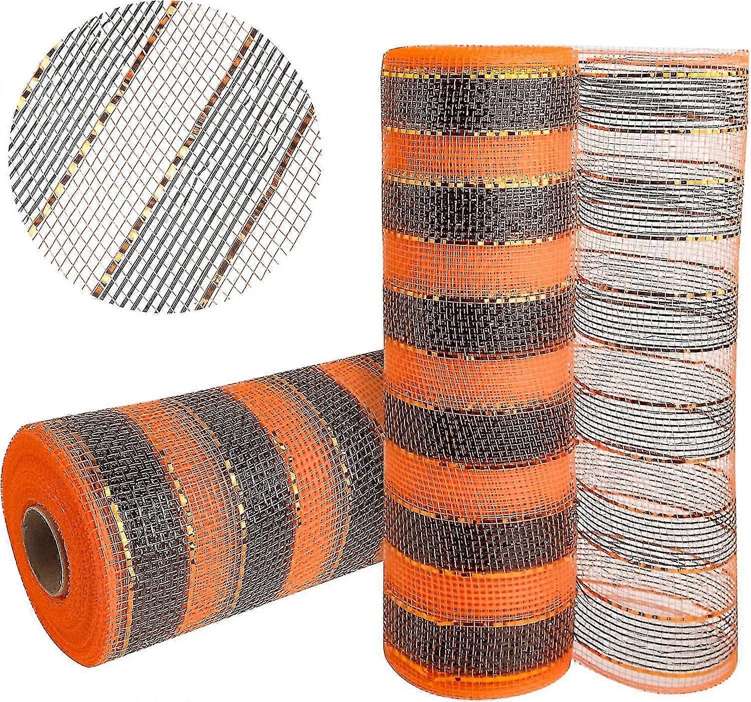 2 Rolls Halloween Poly Burlap Mesh 10 Inches For Wreaths Deco Mesh Ribbon Orange Gift