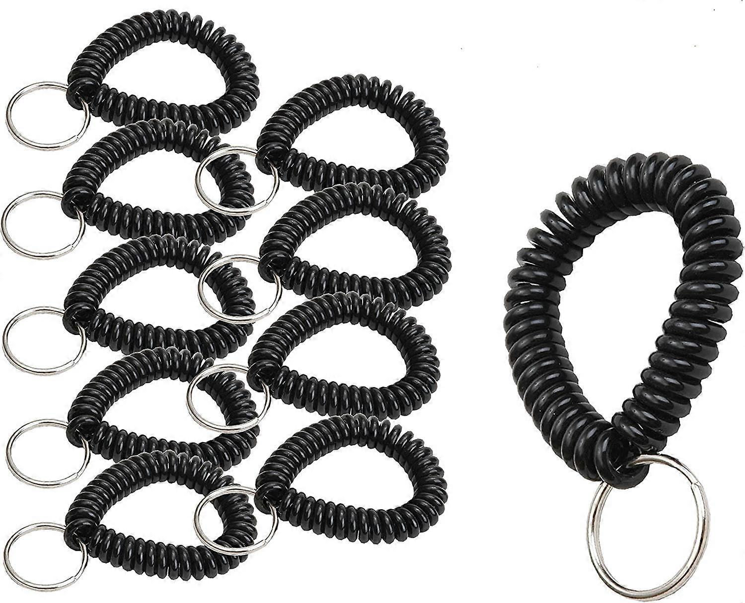 2 Diameter Spiral Wrist Coil with Steel Key Ring, Flexible Wrist Band Key Chain Bracelet, Stretches to 12, Pack of 10