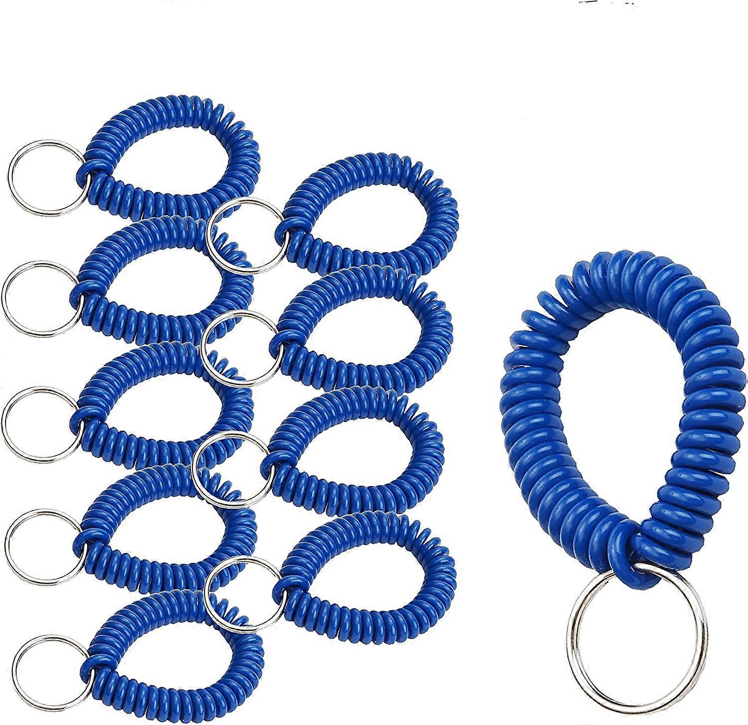 2 Diameter Spiral Wrist Coil with Steel Key Ring, Flexible Wrist Band Key Chain Bracelet, Stretches to 12, Pack of 10