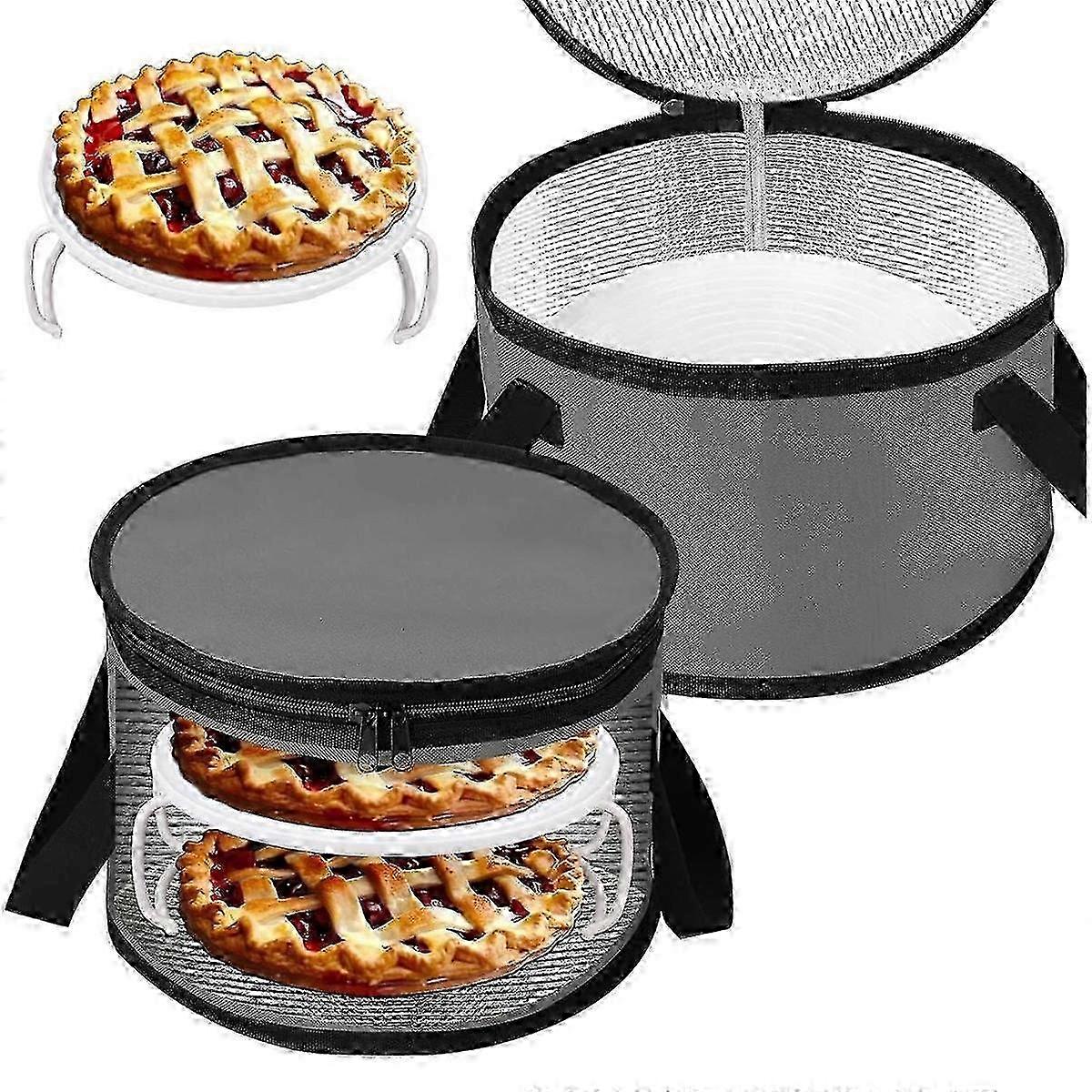 2 Sets Round Pie Carrier 11 x 7 Inch with Dish Tray Plate Stacker Insulated Casserole Carrier with js