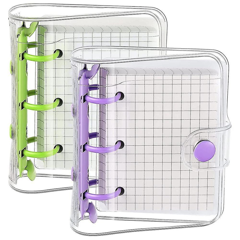2 Sets Mini Clear 3 Covers With Binder Inner Paper Bag Clear Soft Pvc Notebook Closure Binder(green