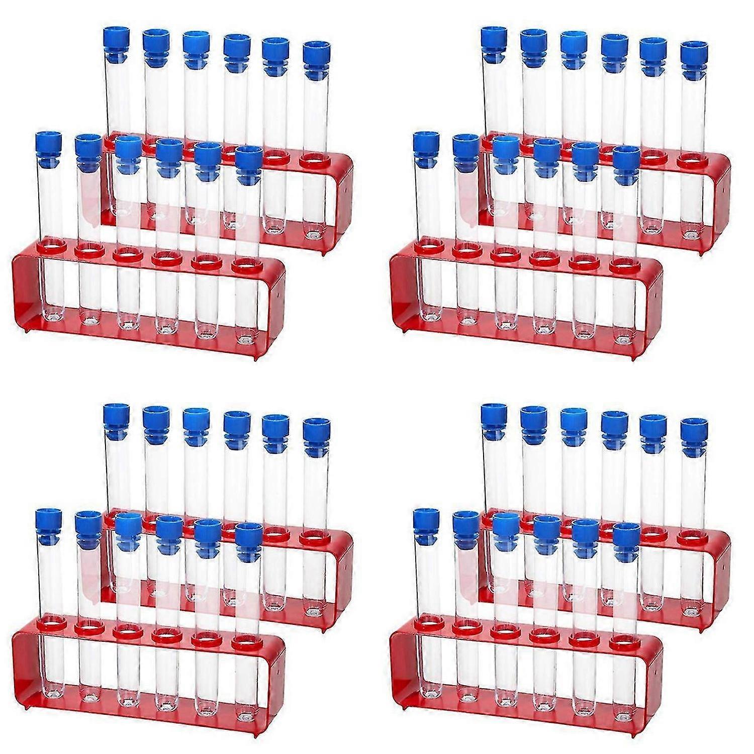 2 Sets 15x100mm Plastic Test Tubes with Caps and 6 Holes Holder Rack