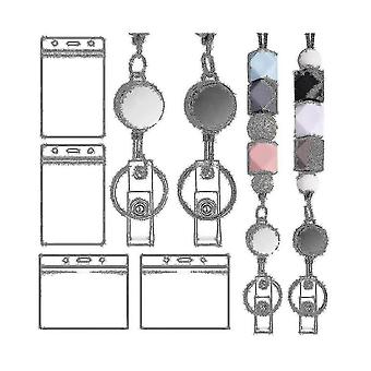 2 Set Retractable Lanyard For Id Badges, Teacher Lanyard With Id Holder Beaded Lanyards For Women D