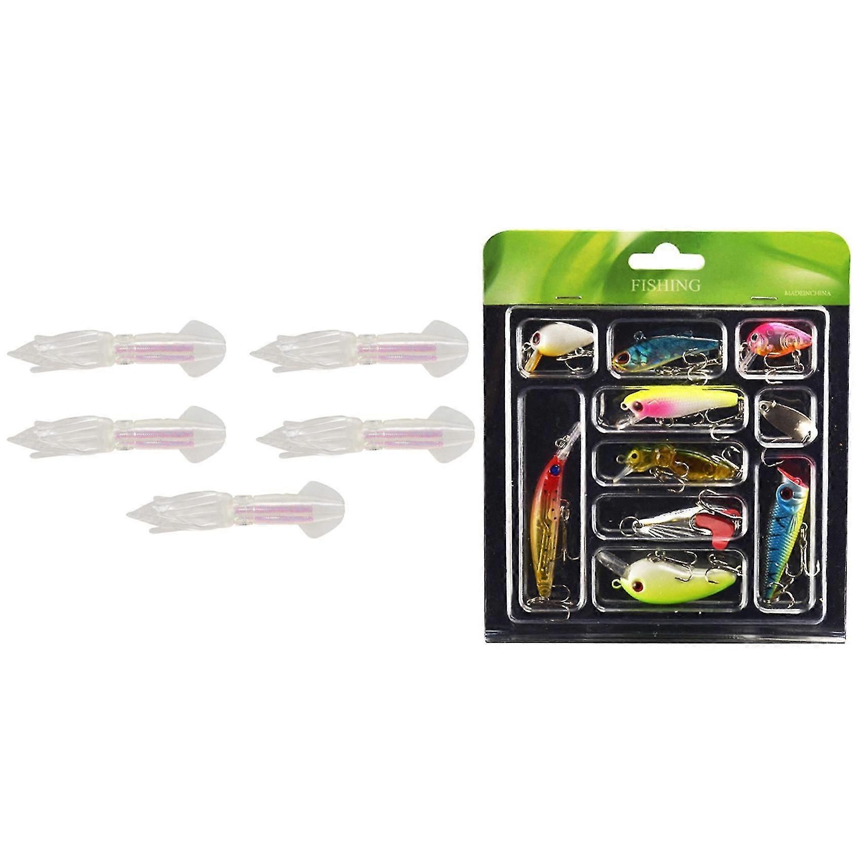 2 Set Glow Luminous Silicone Squid Lures Soft Squid Skirt Bait With Mini Lure Bait Set Mino Vib Seq