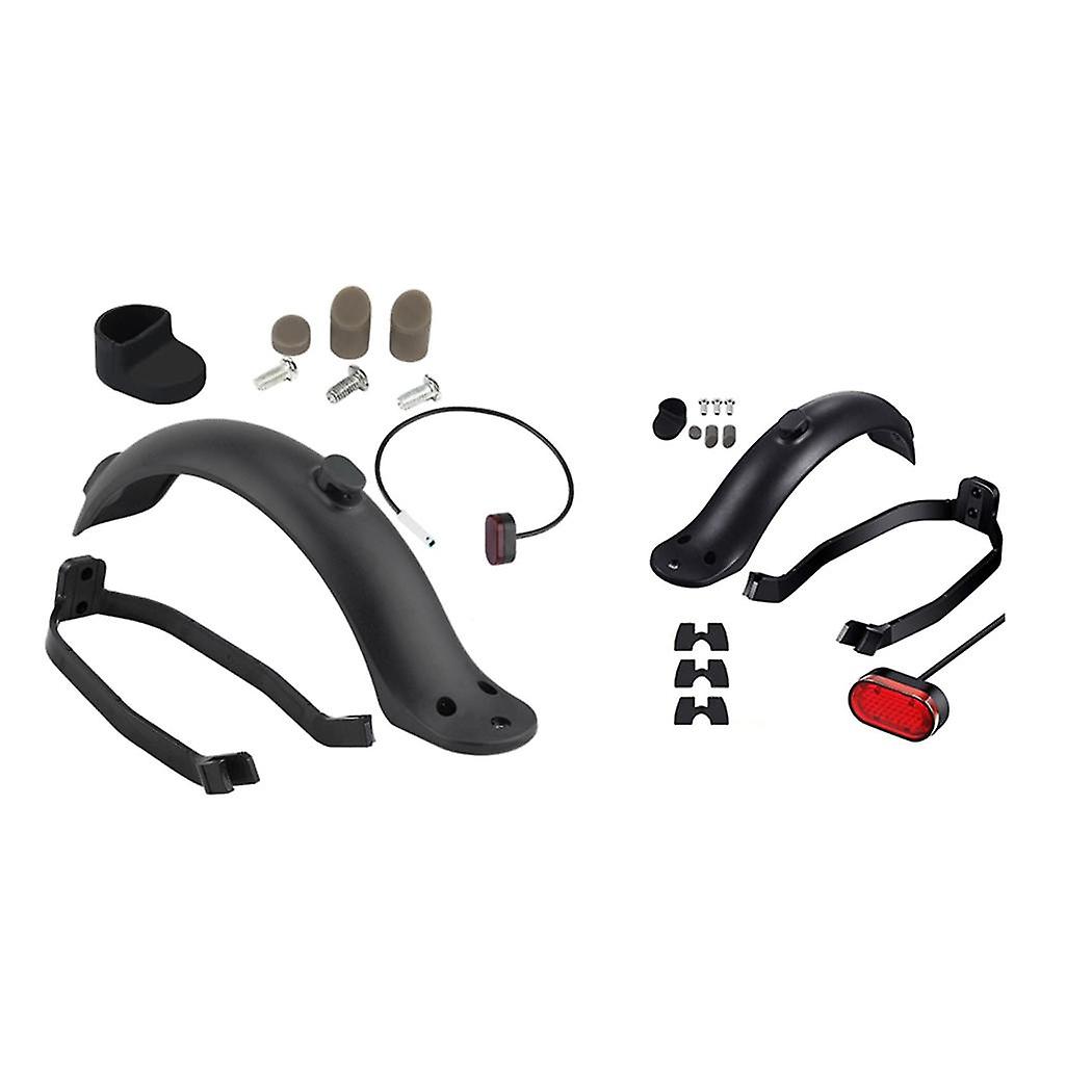 2 set Electric scooter rear fender accessories tail light bracket set: 1 set A & 1 set BRear Fender: The rear fender can protect your scooter from dirt when you are driving the scooter, preventing mud from staining your clothes, we also offer 3 pieces of screws, 3 pieces of screw caps so you have a quick and easy installation; Cut the rubber screw cap to a compatible length to fit the cap holes if it is slightly longerRear Fender Bracket: The rear fender bracket can eliminate the possibility of the LED wire touching the wheel and fix the fender in place, 2 mounting screws are also provided, no need to buy additional screws, just unscrew the screw the rear warning light and fix the fender bracket on your electric scooter with the existing bolts, then tighten the elements to ensure the installation is safeTail Light: Made of plastic materials, the LED taillights are strong and lightweight, durable to provide long service time, the plugs are easy to install, the good replacement part of the safety taillight for electric scooter M365 / M365 proProduct Function: Made of high-density plastic, this fender mount is lightweight and durable, which can prevent the fender from colliding on the road and keep the fender in place, prevent LED cables from touching the wheel, which improves your driving experience100% new and high qualityMade of high quality material, more durable.Suitable for MIJIA M365 Electric Scooter.Lightweight, easy to installMaterial: ABScolour: blacksize: 31 x10 x6cmSupport for:The rear fender, rear fender mount and tail light are fit for M365 / M365 pro scooter, the rear fender mount advantages greatly by extending the life of your fender, accidentally stepping on the fender and breaking it.