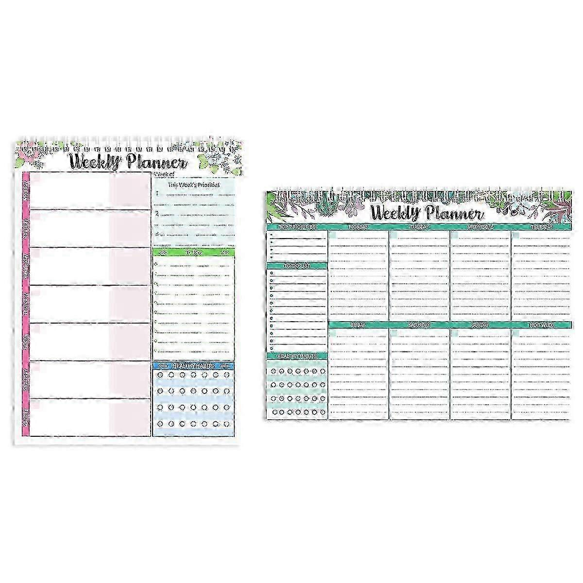 2 Weekly Planner Notepad, Planning Pad with Daily Schedule, Undated Weekly To Do List Notepad PCS