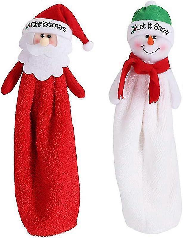2 Christmas Hand Towels, Santa Towels, Bath and Kitchen Flannel