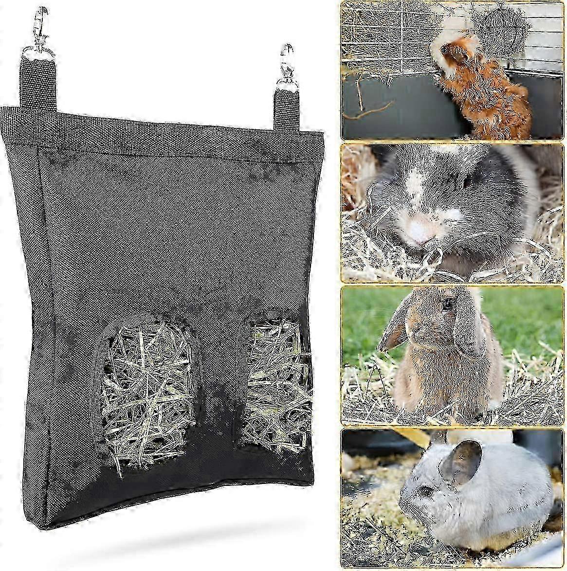 2 Ports Rabbit Hay Feeding Bag Small Animal Hanging Food Storage Bag (Black)