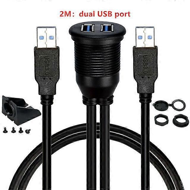 2 Ports Dual USB 3.0 Male to USB 3.0 Female AUX Flush Mount Car Mount Extension Cable for Car Truck Boat Motorcycle Dashboard