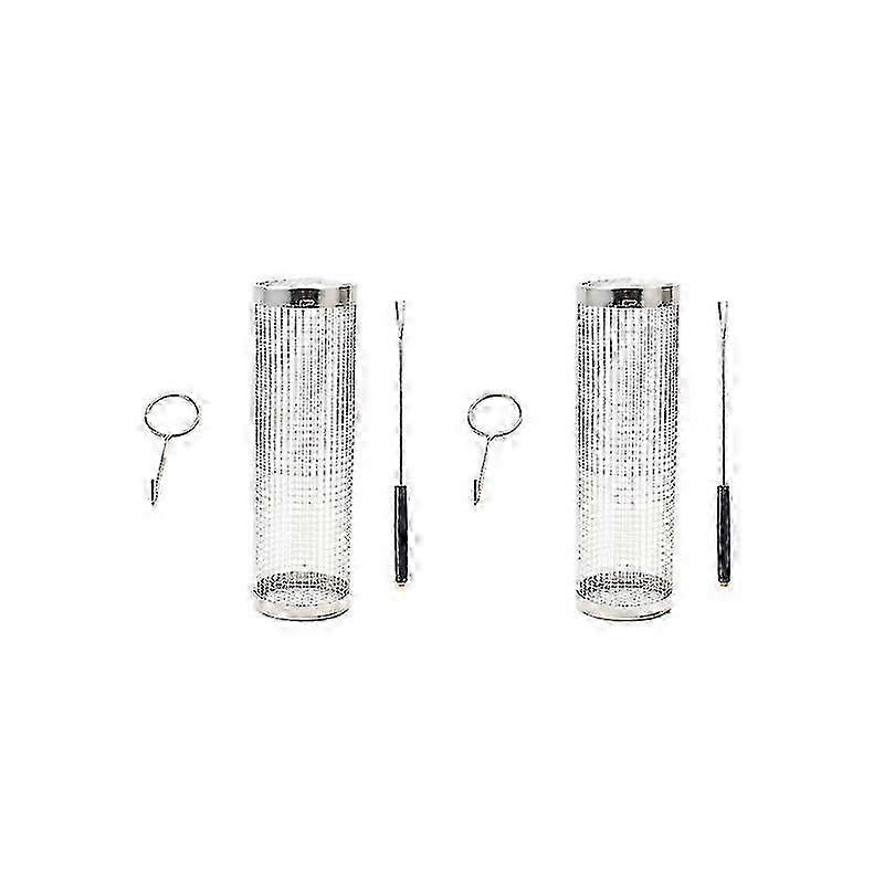2Pcs Rolling Grill Basket - Greatest Grill Basket Ever, Round Stainless Steel Grill Mesh, Camping G