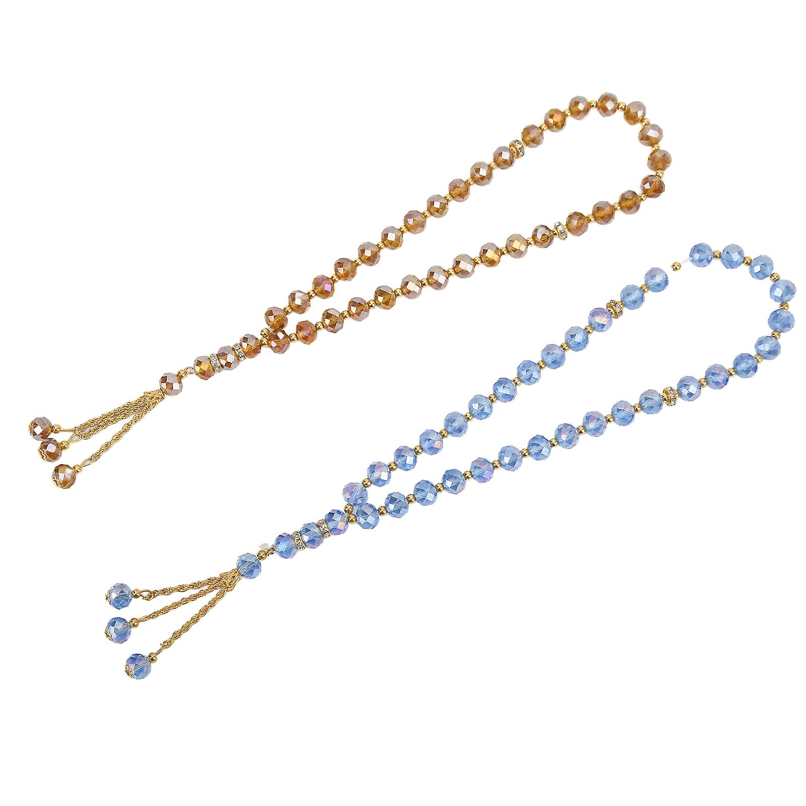 2pcs Prayer Beads Mini Blue Champagne Color 33 Beads Muslim Tasbih with Sapcer Beads for Daily Decoration Gift
