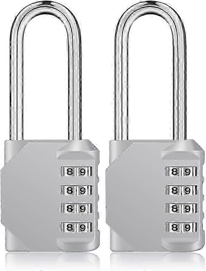 Long Shackle Padlock 2 Pack, 4 Digit Combination Lock, Resettable Weatherproof Combo Lock for School, Gym, Employee Locker, Outdoor, Fence (Sliver,Pac