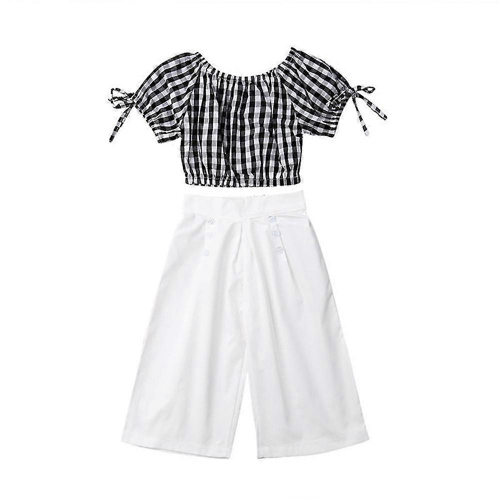 2-7 Years Kids Girls Cropped Tops Wide Leg Pants Outfit Set
