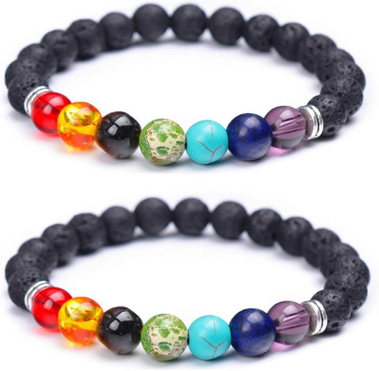 2Pcs Lava Rock Stone Bracelet 7 Chakra Essential Oil Diffuser Bracelet Natural Stone Yoga Beads Bracelet for Men Women (Silver)