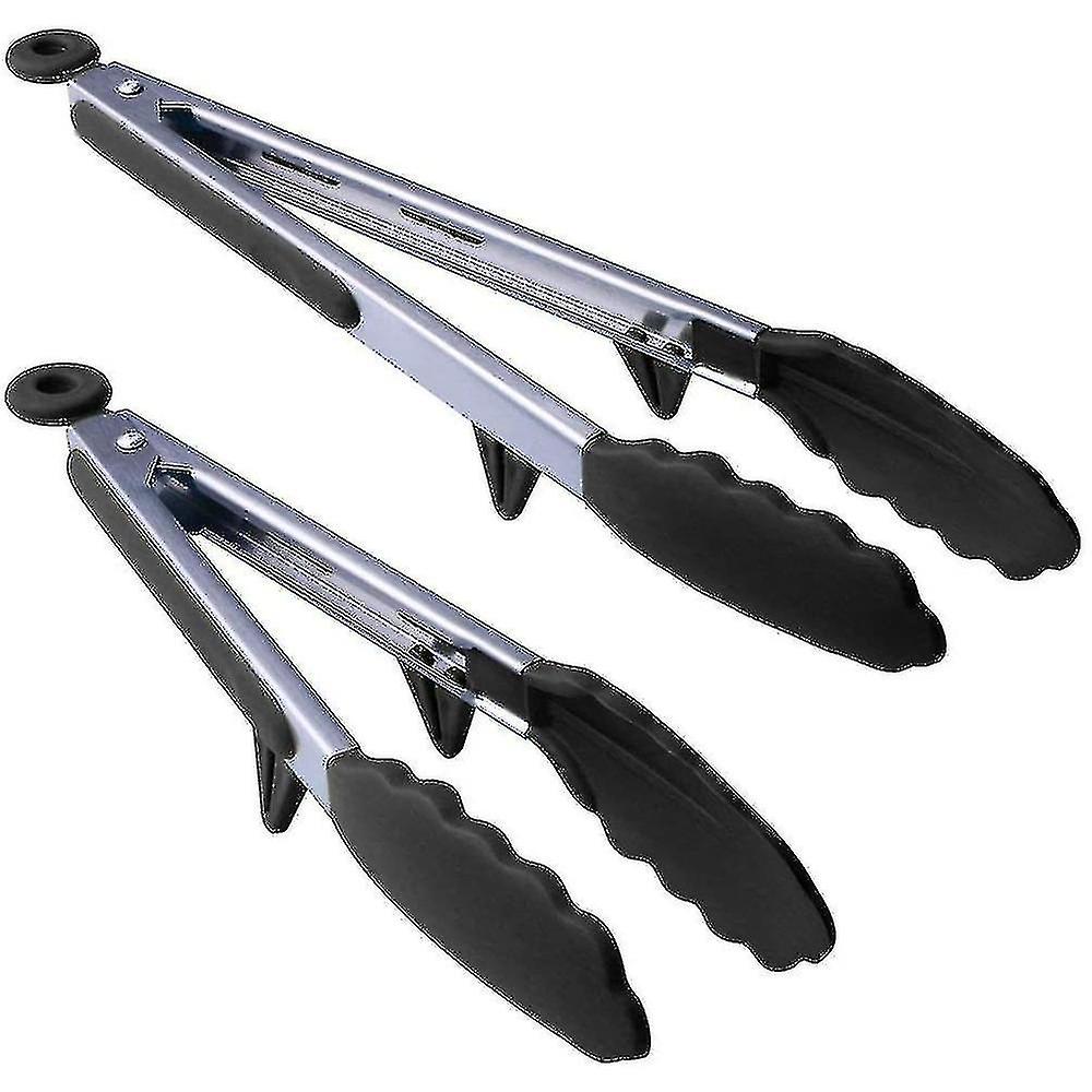 2pcs Stainless Steel Kitchen Tongs,non-slip Grip, 9-inch+12-inch,black