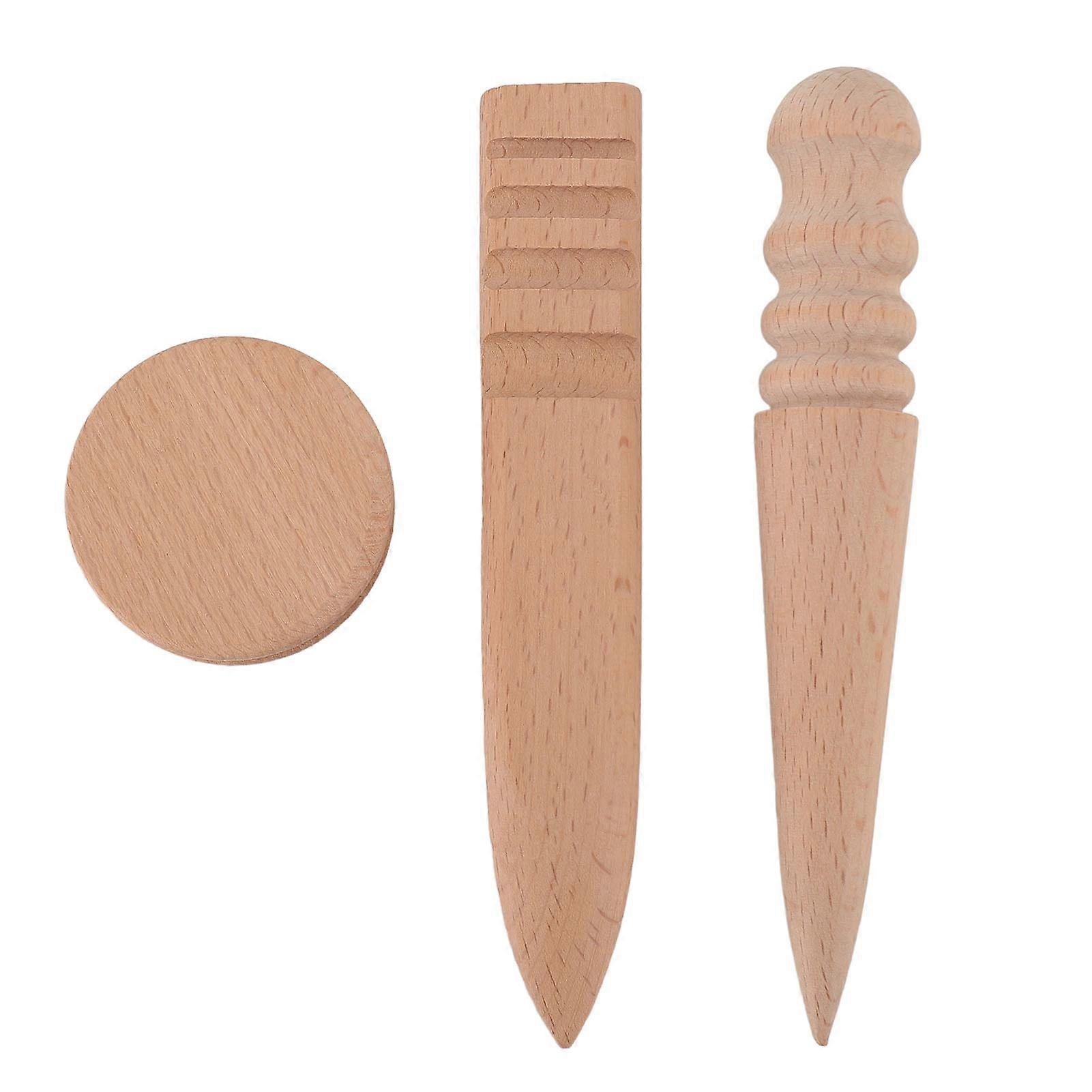 2PCS Wooden Grinding Sticks with Cake Shape Polisher Leather Craft Edges Burnisher Set for Polishing Shaping Sanding