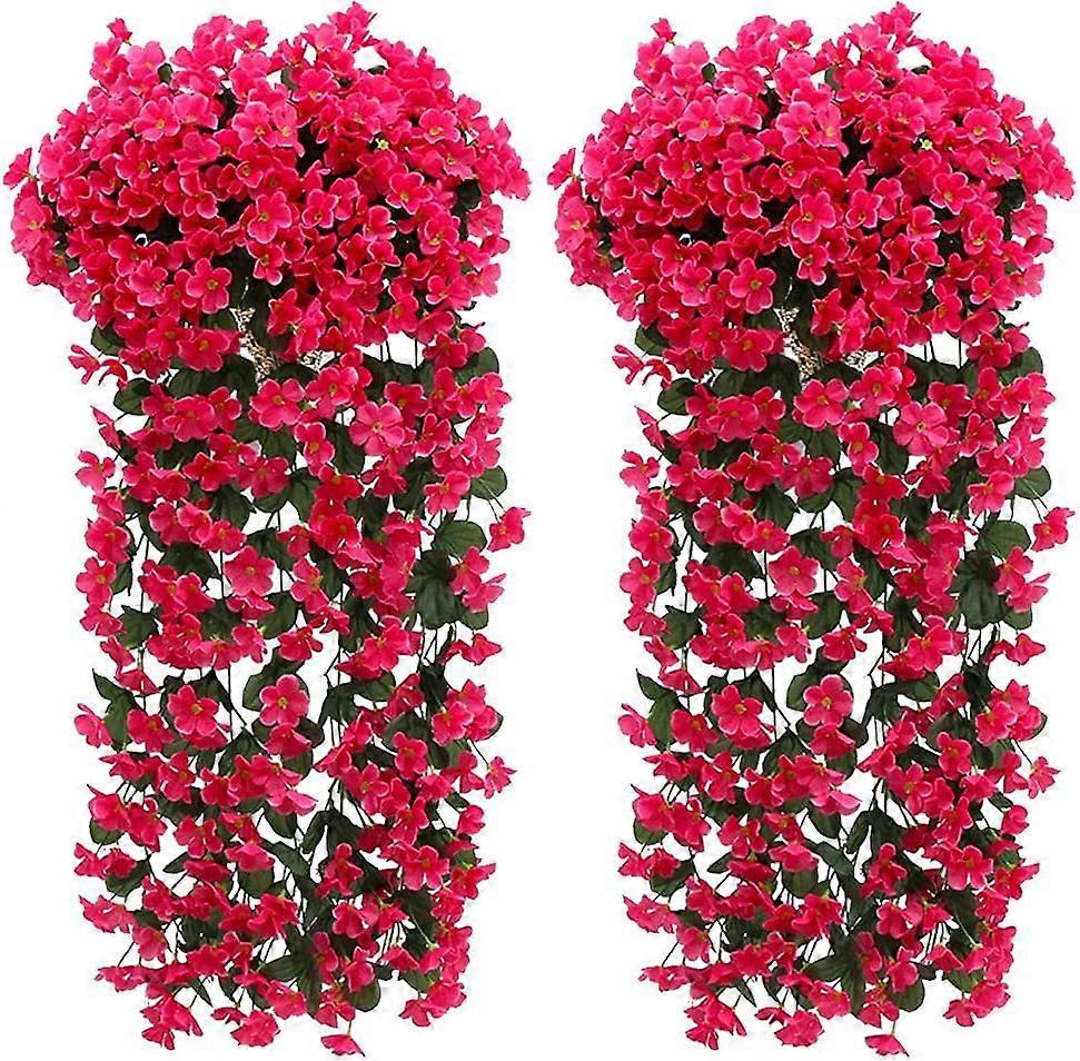 2Pcs Artificial Wisteria Vine Violet Ivy Flowers, Artificial Hanging Flowers Basket Lifelike Faux Wisteria Hanging Garland for Outdoor Home Wedding Ga