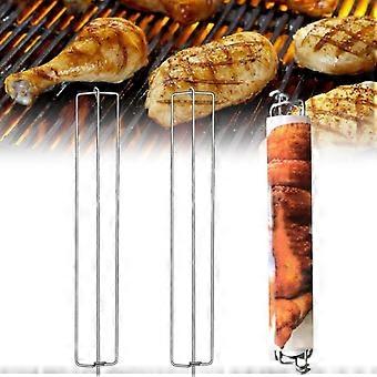 2 Pack Grilled Chicken Wing Wing Rails, Flat Clip Wing Rails, Metal BBQ Fork Wing Racks BBQ Skewers, BBQ Tool Set Outdoor Picnic Camping Party -GSL