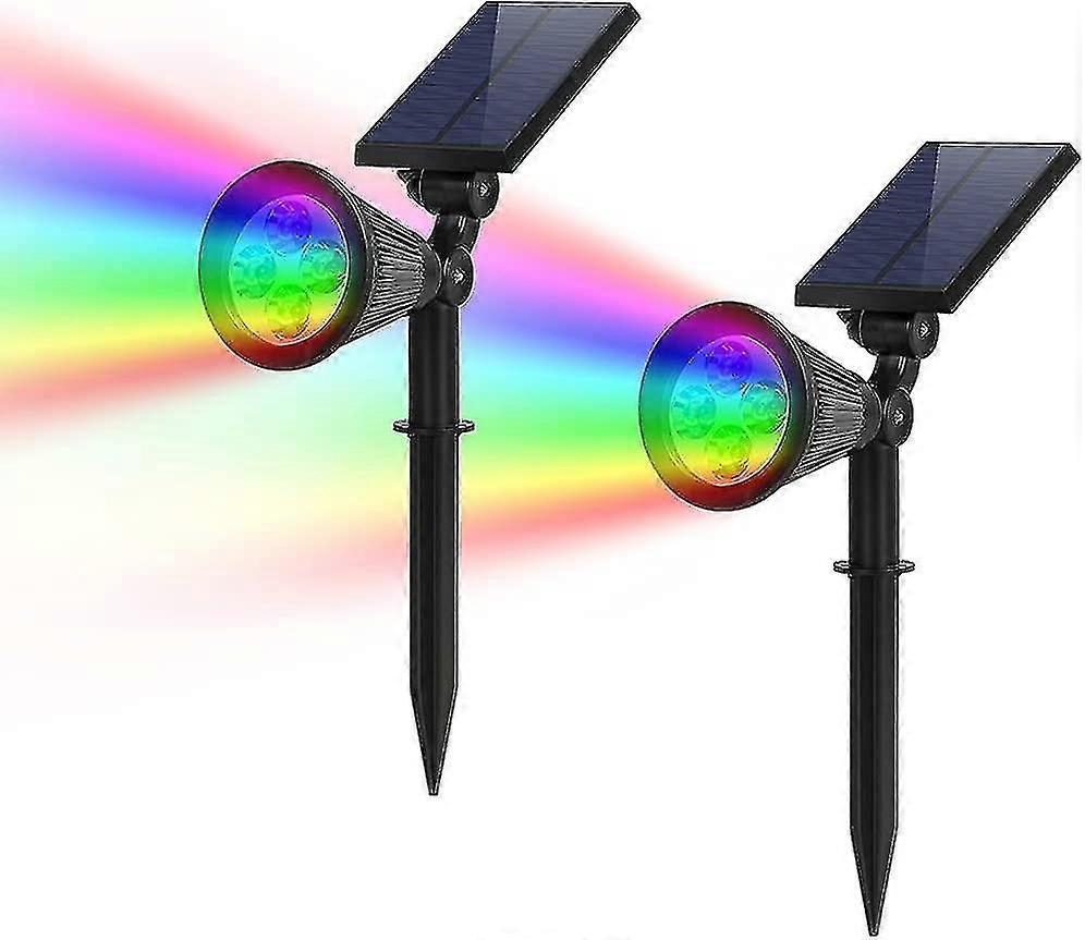 2-in-1 Adjustable Colored Solar Spotlights with Automatic Dusk to Dawn Sensor, 4 LED Wall/Ground Lights, 2 Pack