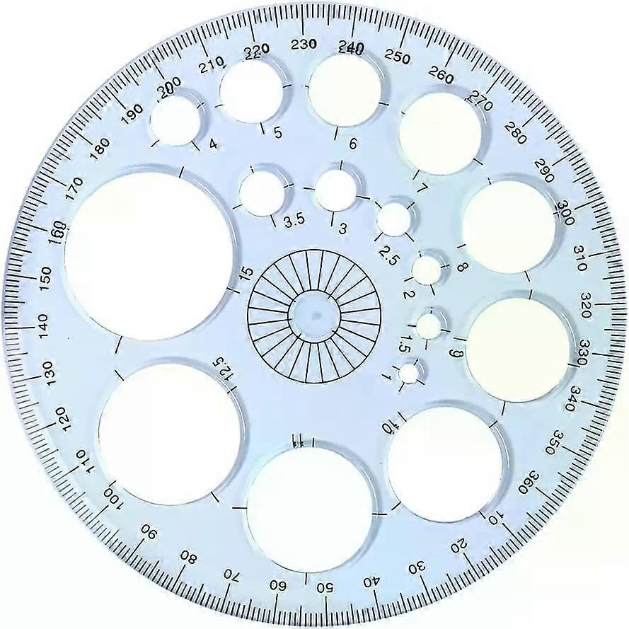 2 Packs Multifunctional Round Circles Drawing Tool Stencil Template 1-15MM Semi-Diameter Protractor-Free Circles Draft Template High-quality materialThe round protractor is made of high-quality plastic, which is thick and durable and not easy to break. The 360-degree protractor is lightweight and can be easily put in or taken out. Clear ScaleThe plastic protractor is made of clear plastic. There are 360 degrees in total, with a clear tick mark every 10 degrees. The protractor is highly transparent, easy to read the inch and centimeter scale on the ruler, and easy to measure. 16 Size Circular TemplatesOne of the best things about this geometric protractor is that it has 16 circular templates of different sizes. The diameter of the round hole is suitable for various drawing scenarios, and the problem of drawing a circle can be quickly and easily solved. Widely ApplicationThe universal circular protractor can be used in homes and offices, students and teachers in schools, suitable for painting, measuring, homework, technical drawing, etc. The protractor is an indispensable angle measurement tool and can solve the problems of learning and work. NotesDue to the difference in shooting light and angle, there may be a slight color difference. _x000D_