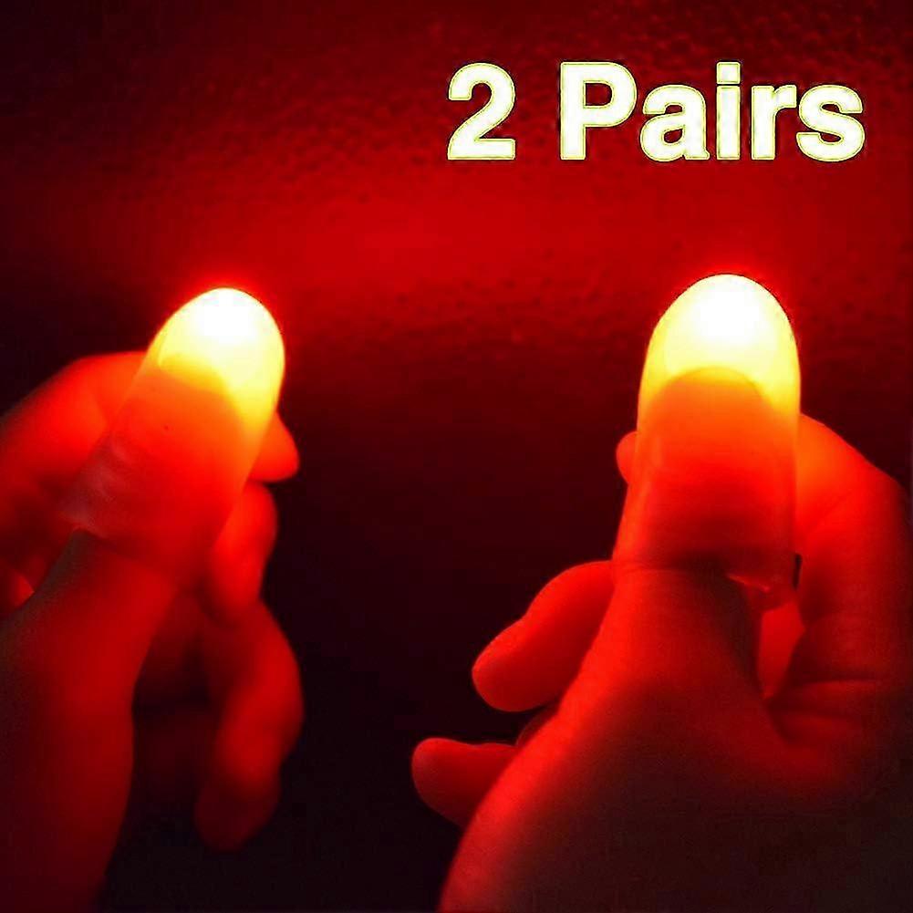2 Pairs Red Magic Light Up LED Finger Lamp Thumb Tips for Party Magic Tricks