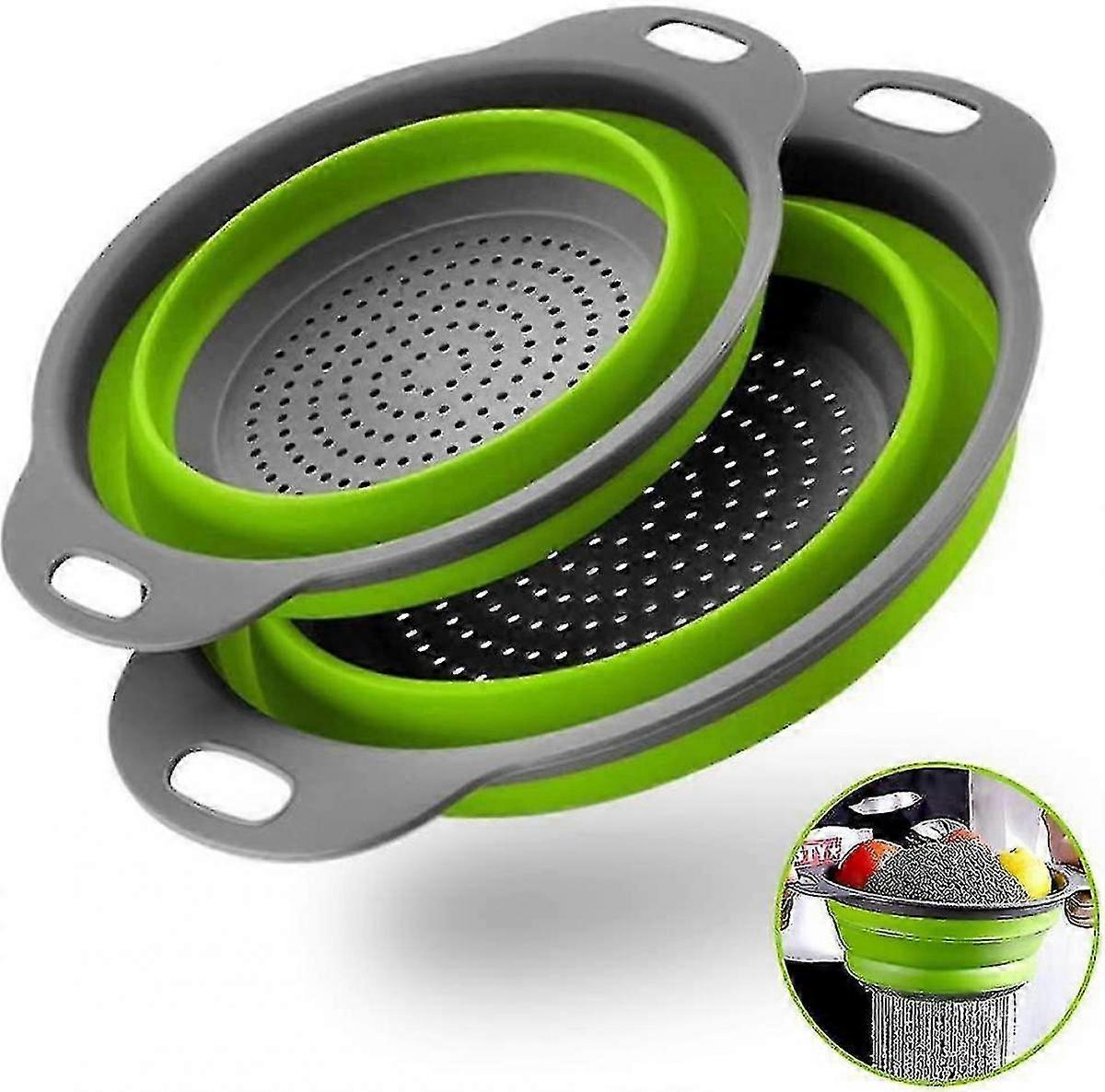 2-Piece Collapsible Silicone Colander Set - Large & Small Round Kitchen Strainers