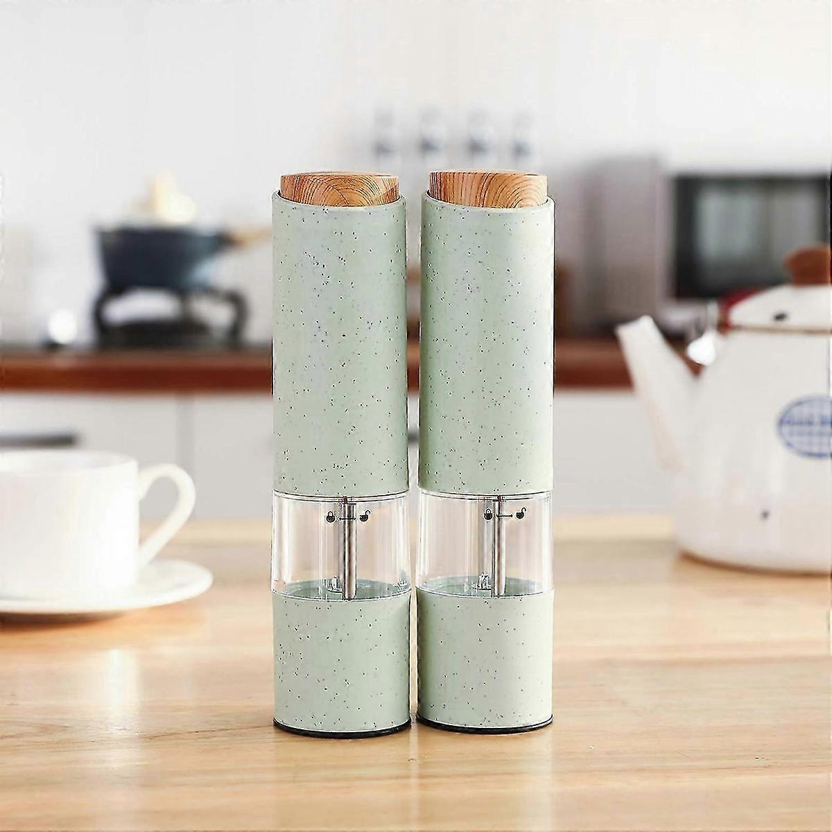 2-Piece Electric Spice Mill Set with LED Light, Adjustable Ceramic Grinder