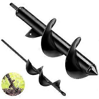 2 Psc Wick Garden Auger Drill Bit Garden Spiral Garden Auger For Gardening Planting Flowers Bulbs Seedlings With Gloves 30x8cm & 22x4cm