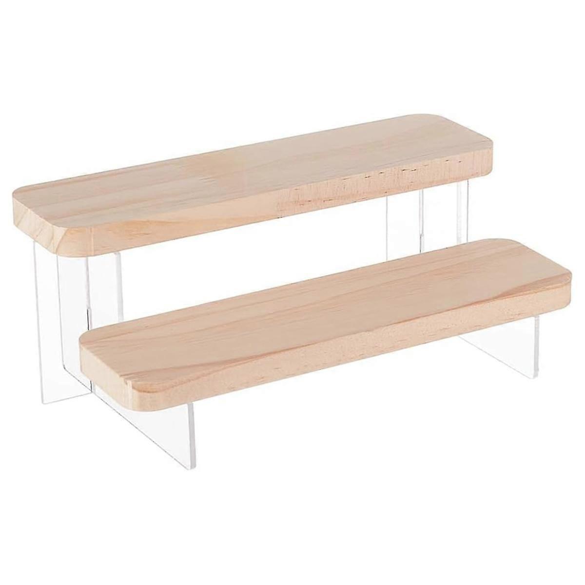 2-Tier Figure Display Stand Wooden Tiered Organizer Holder, Acrylic Display Risers for Models, Build