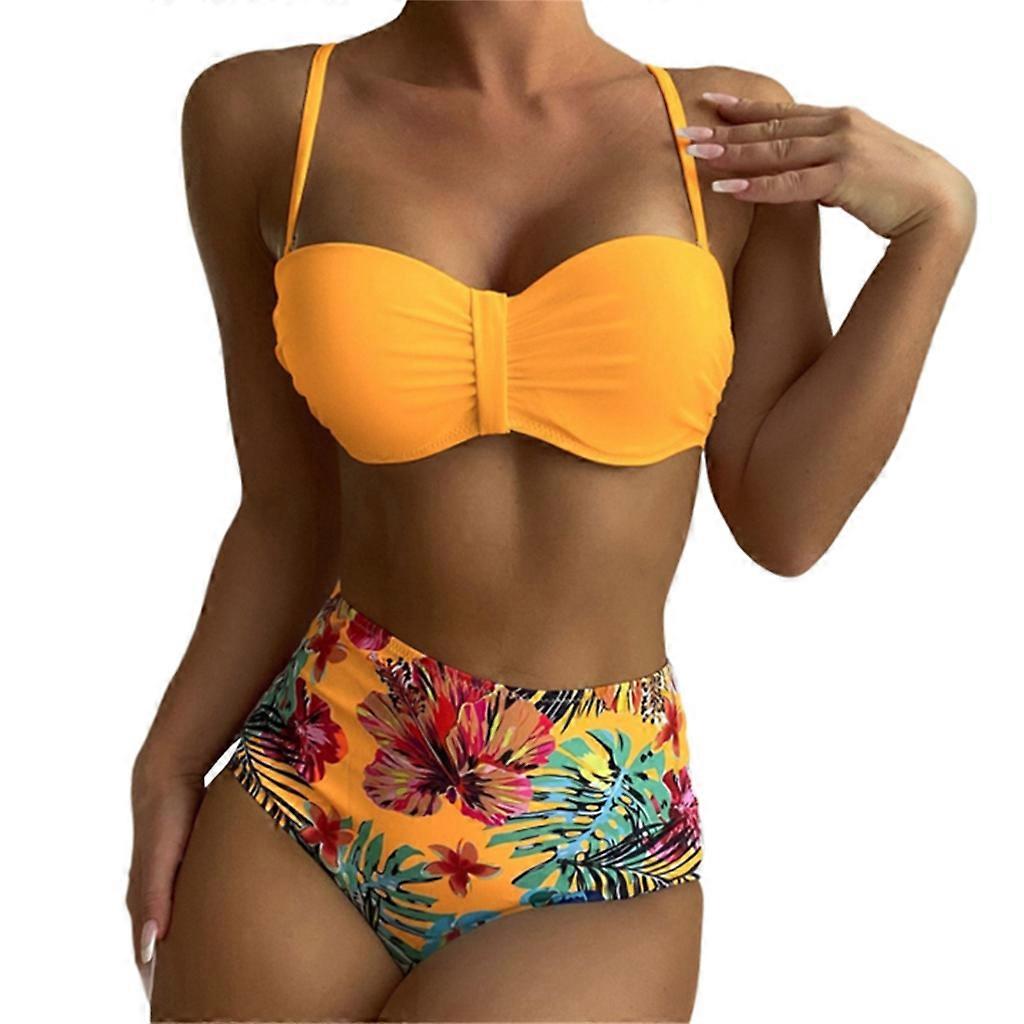 2 Pieces Split Bathing Suit for Women Floral Printed Bikinis Swimsuits Beachwear